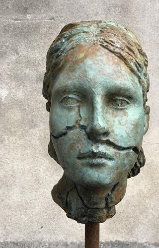 “Misja Kristoffer Rasmussen takes his cue from Greek statuary, but reinterprets it in the light of contemporary chromatic values, highlighting, via the chromatism of the aged patina, chromatic rather than plastic values and conveying, through the prominent fractures that cross faces and bodies, the crisis of modern man and his inability to reconstruct an organic cultural synthesis to replace that of the past.” (C.S.)