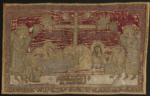 Προέρχεται από τη συλλογή υφασμάτων της Χριστιανικής Αρχαιολογικής Εταιρείας. Η συλλογή άρχισε σταδιακά να εμπλουτίζεται με δωρεές και αγορές, καθώς και με τα λεγόμενα «Κειμήλια Μικράς Ασίας», αντικείμενα προερχόμενα από τις ελληνικές κοινότητες της Μικράς Ασίας και της Ανατολικής Θράκης, τα οποία έφεραν μαζί τους οι πρόσφυγες αυτών των περιοχών μετά τη Μικρασιατική Καταστροφή (1922) .